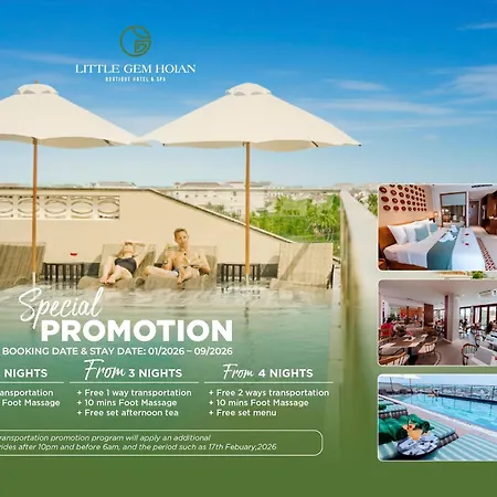 Το Little Gem Hoi An Boutique Hotel & Spa 5 αστέρων είναι μόλις 1 χλμ. από το Παλιό Σπίτι του Φουνγκ Χουνγκ, παρέχει εξωτερική πισίνα και Wi-Fi σε όλο το κατάλυμα. Οι επισκέπτες μπορούν να απολαύσουν τη θέα στην παραλία An Bang που είναι σε απόσταση 10 λεπτών οδικώς ή να επωφεληθούν από χώρος θεραπειών και σάουνα που προσφέρονται στις εγκαταστάσεις.
